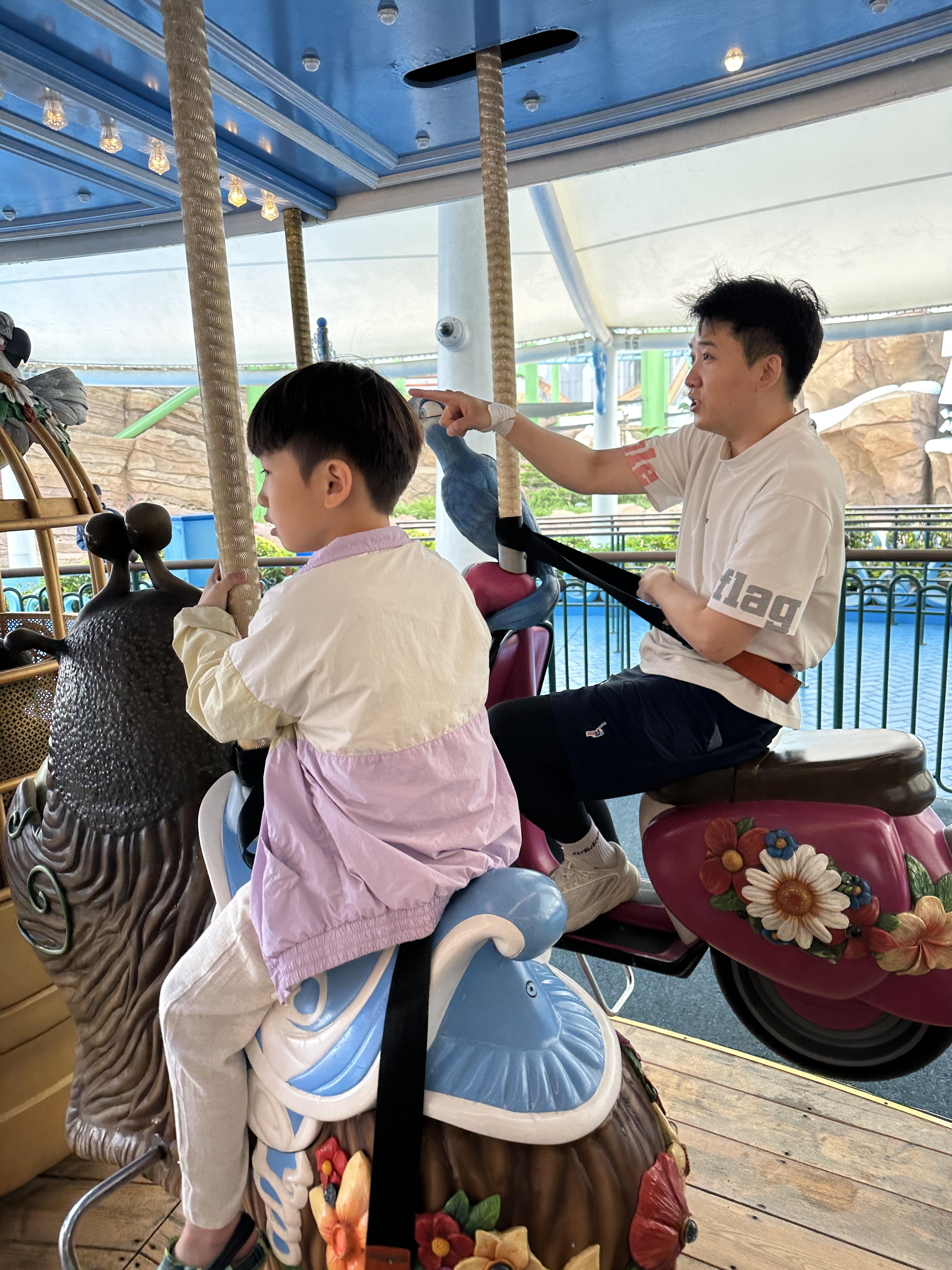 회전목마와 리오캐릭터의 놀이기구를 타며